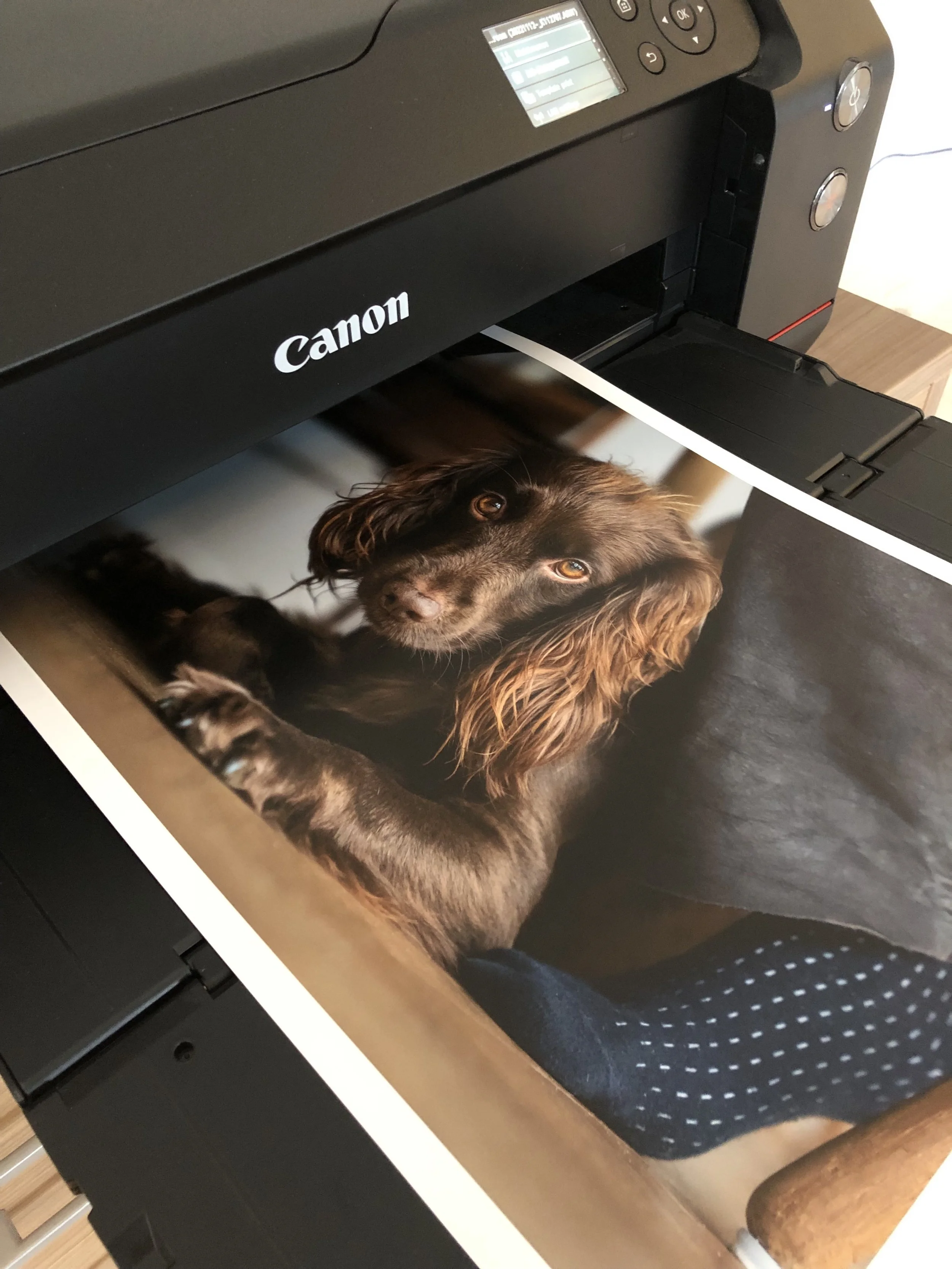 Jeg bor ude på landet sammen med Storm og Kim (Storm er en springer spaniel, Kim er min kæreste). Det er så heldigt, at Kim også er en fotograf, der går op i at printe selv, så for et par år siden anskaffede vi os en Canon PRO-1000 printer. Ikke længe efter udvidede vi maskinparken med en Canon PRO-4100 printer på størrelse med et klaver.